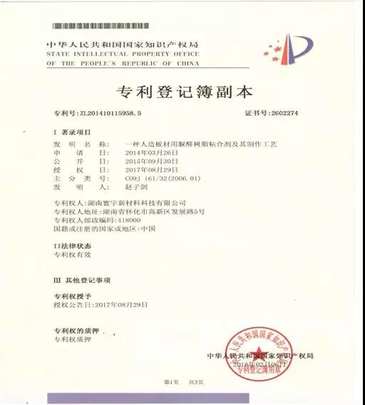 技術(shù):寰宇股份以專注于人類身體健康為己任,板材系列產(chǎn)品均使用自行研發(fā)了獲得國家專利的環(huán)保膠水(專利號:ZL201410115958.5)。從而極大的降低了板材中的甲醛含量,甲醛釋放量達到歐美E0級標準。