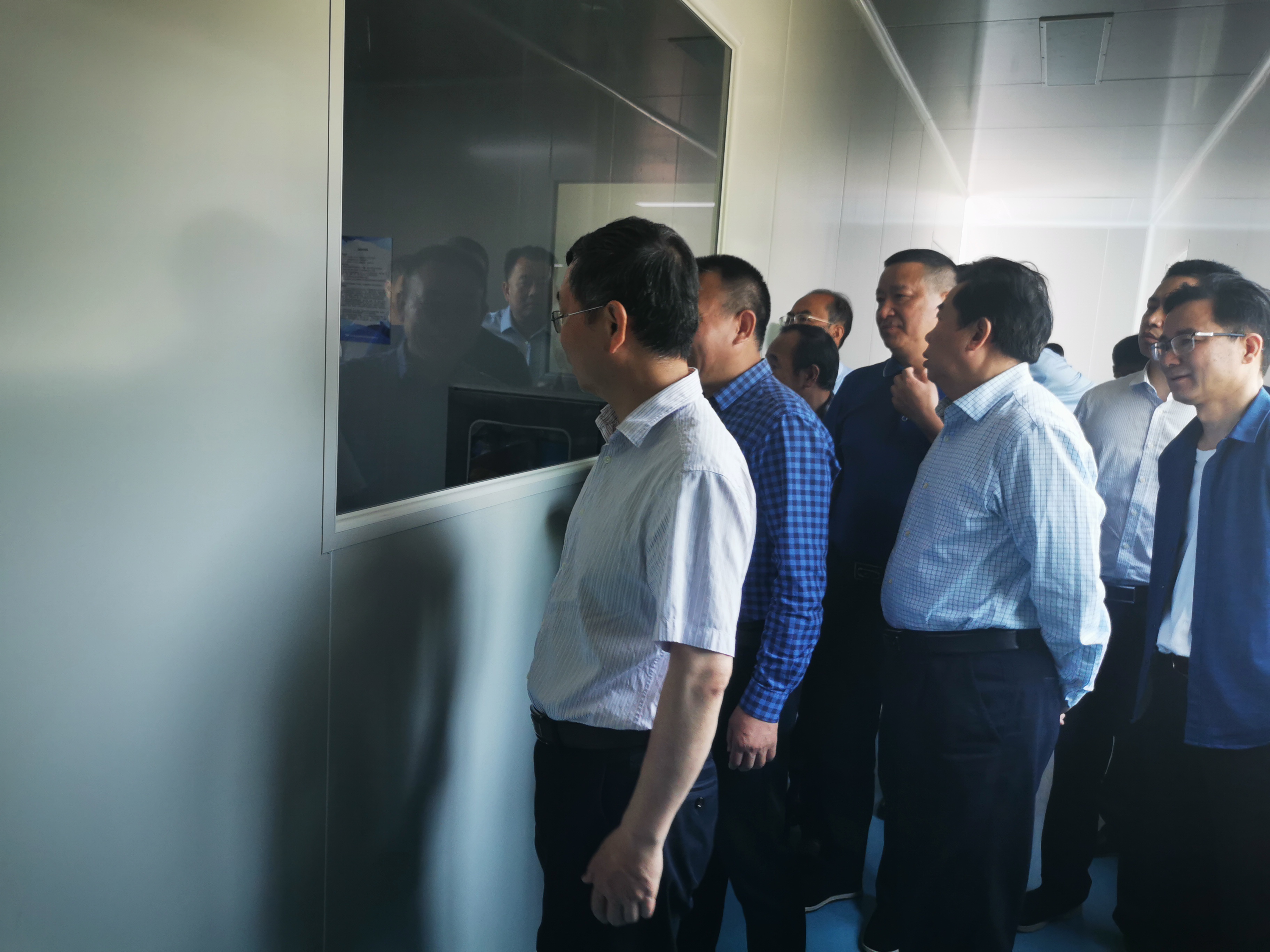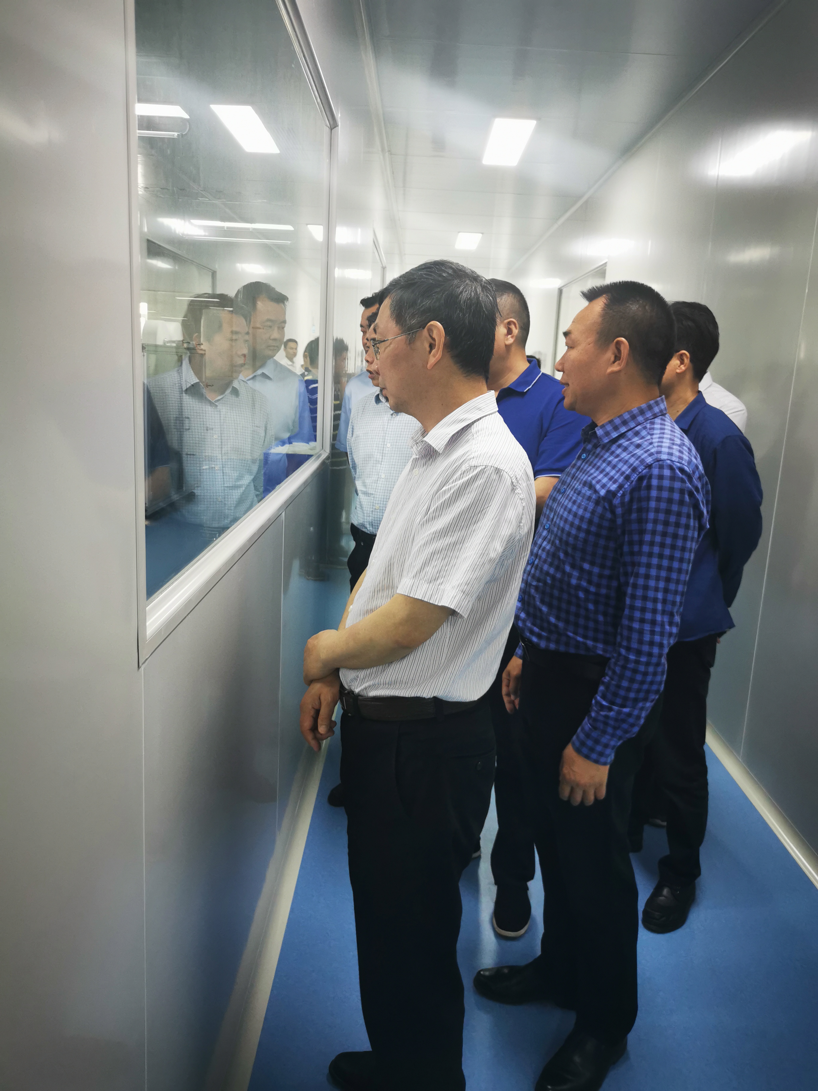 副書記陳恢清一行在董事長周祚新陪同下參觀口罩生產無塵車間